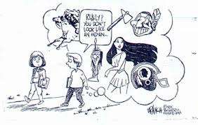 真ん中の少年は「REALLY? YOU DON’T LOOK LIKE AN INDIAN.(ほんと?インディアンには見えないけど?)」とネイティブアメリカンの女の子に話しかけています。彼の中で”インディアン”はとてもステレオタイプ的にしか理解していないというものです。