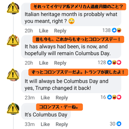 一部の人々、特にイタリア系アメリカ人のコミュニティでは、「コロンブス・デーは私たち移民の誇りを祝う日だ」という声が根強くあります。アメリカ社会で差別を受けながらも成功した彼らにとって、コロンブスは“自分たちのルーツを象徴する人物”だったのです。